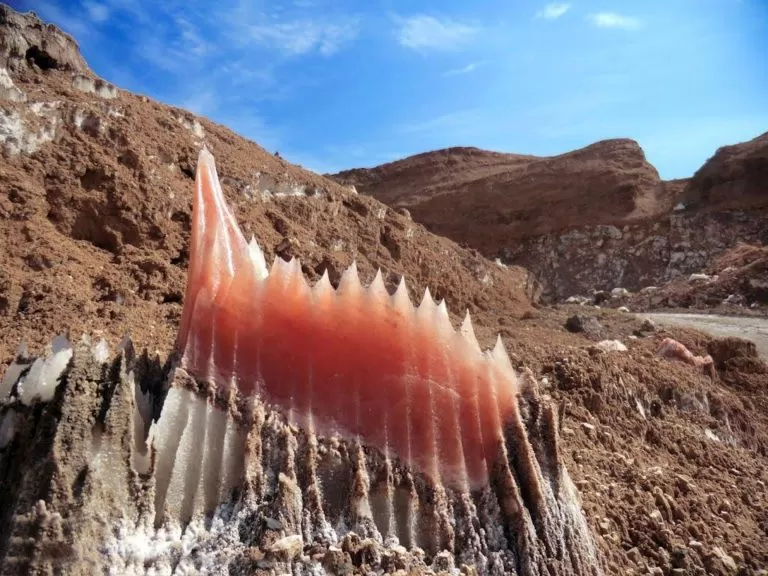 Namakdan Cave is part of a salt dome, a structure formed by the upward movement of salt from deep within the Earth. This phenomenon occurs due to the low density of salt and the pressure exerted by overlying layers. The salt reaches the Earth's surface and, over time, with the influence of weathering and groundwater, forms caves.